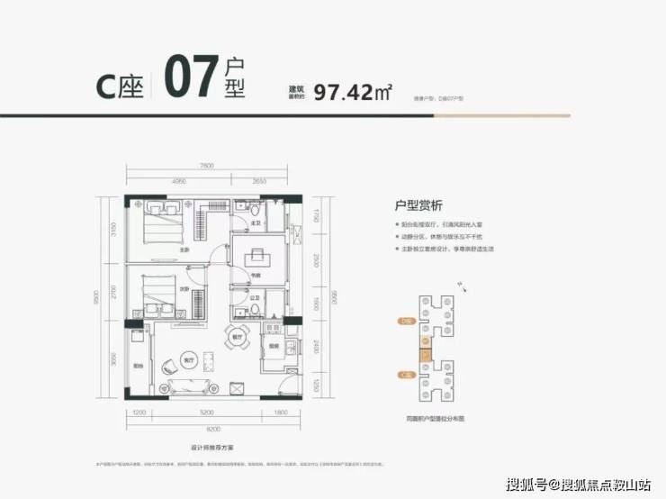 C03户型:约86㎡全能大三房,南北通透+ 全明格局