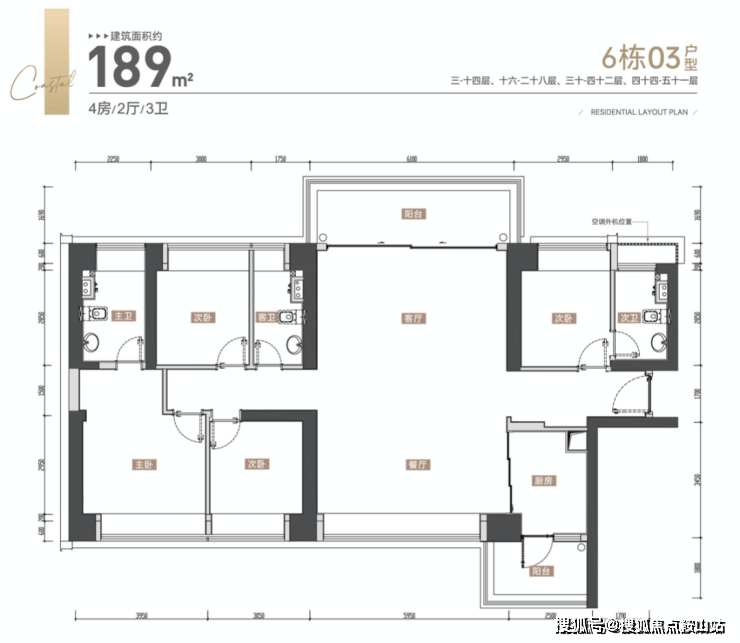 3栋:4梯6户,层高3.1米,01-04户型100平3房2卫,05-06户型120平4房2卫