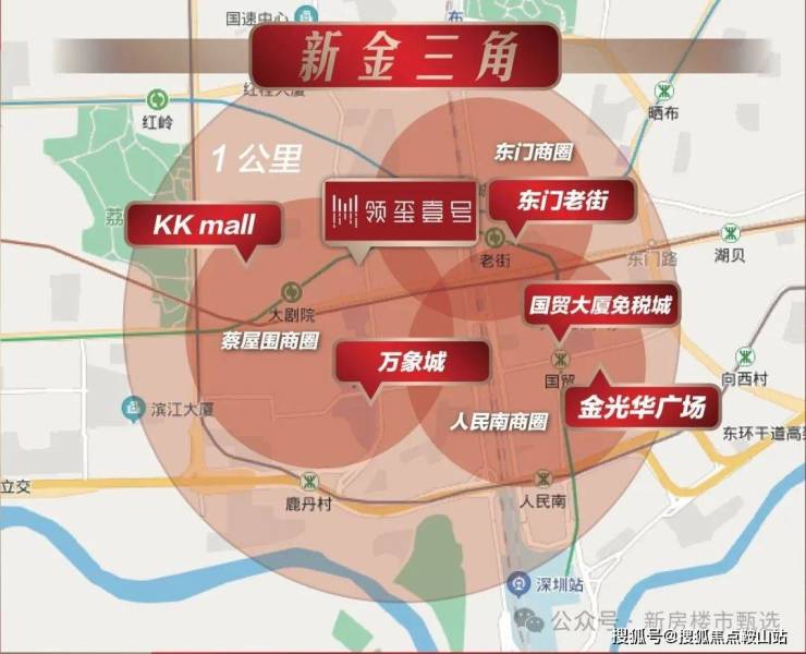 盘踞蔡屋围、东门、人民南金三角三大商圈核芯地段,1公里内聚集万象城、KKmall、金光华等超150万㎡商业综合体繁华生活唾手可得。