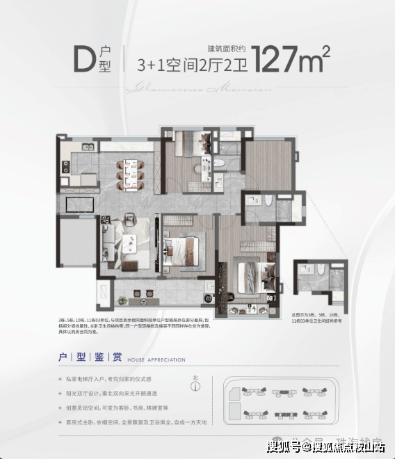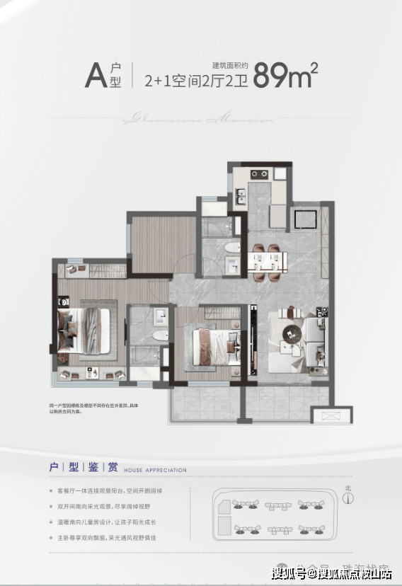 8 必选户型 建面约89-162㎡创变三至四房,南北通透格局,高使用率,全南向采光,创享生活的美好可能。