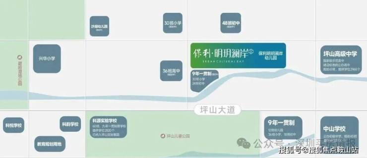项目自带12班幼儿园,周边3块教育规划用地相邻,临近科源、科悦实验学校,深圳实验学校高中园等,初中属于碧岭实验学校大学区。