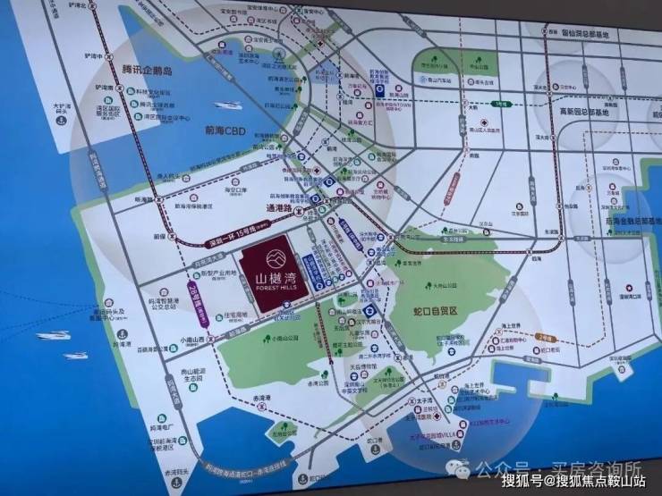 交通方面,山樾湾项目距离在建中的地铁 15 号线“通港路站”直线距离约 500 米,通车之后三个站直达腾讯企鹅岛,六个站连接南山科技园,便捷覆盖深圳各大核心区。同时,项目堪称“左拥前海右揽蛇口”