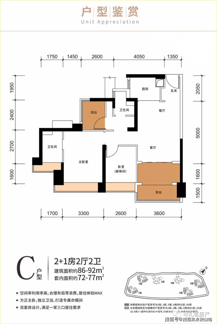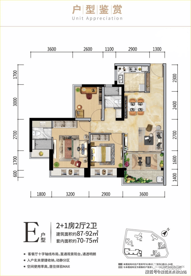 E户型|01/02/03/04梯腿,约89㎡爆品三房