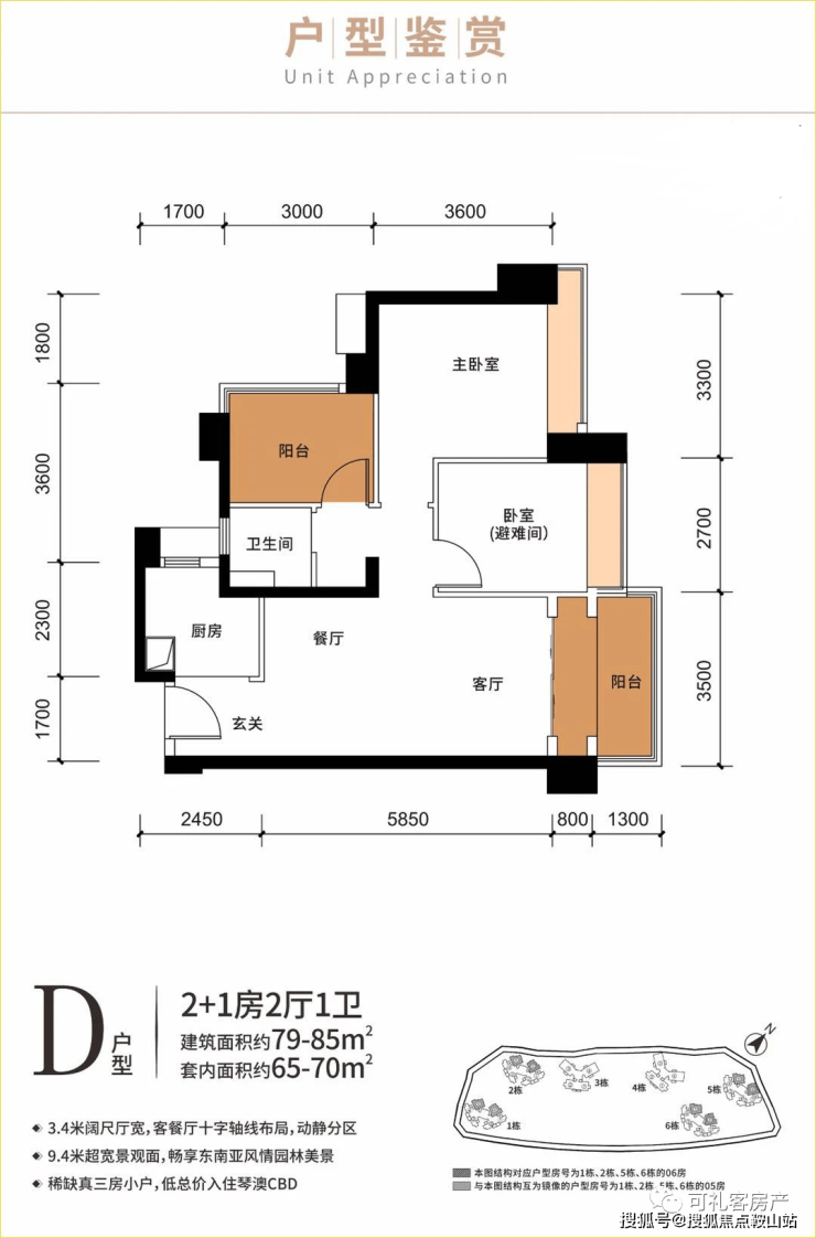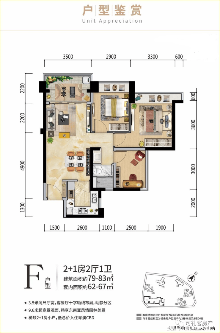 片区实用3房户型,使用率约83%,南北观景双阳台,瞰琴澳盛景,性价比超高,投资自住两相宜。