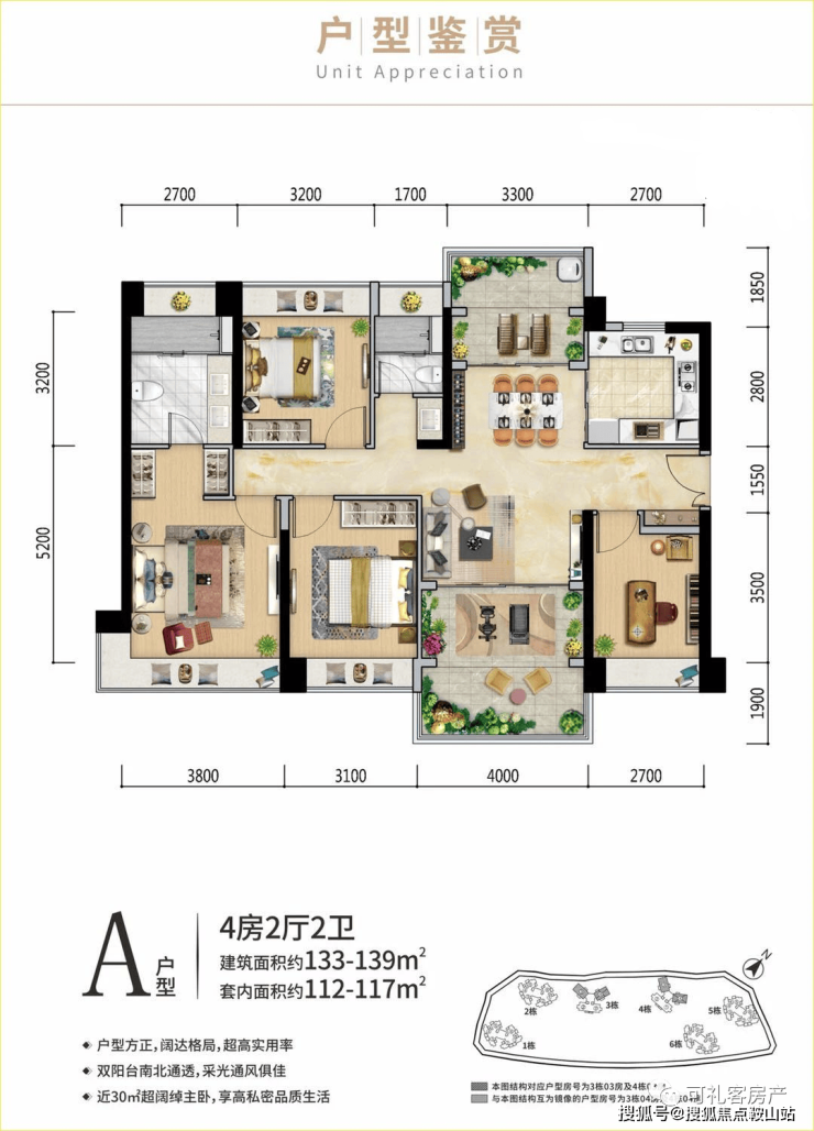 梯户比:3、4栋两梯四户,6栋三梯六户
