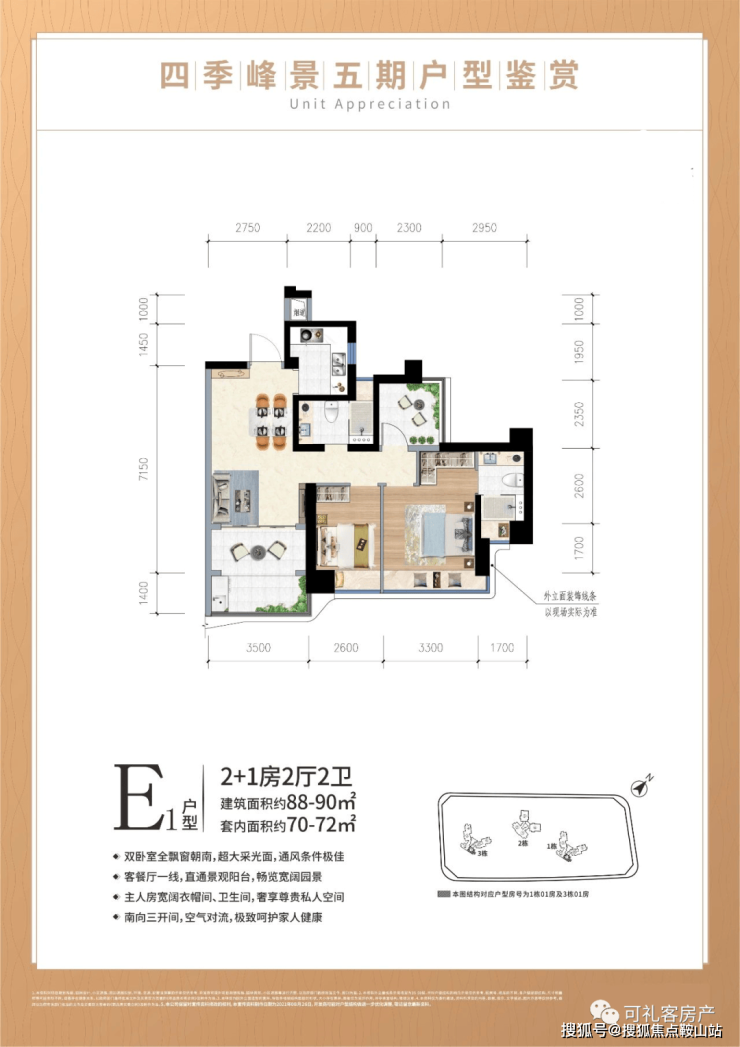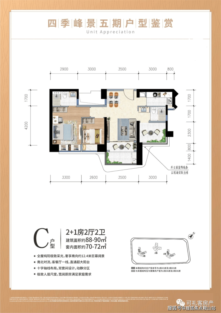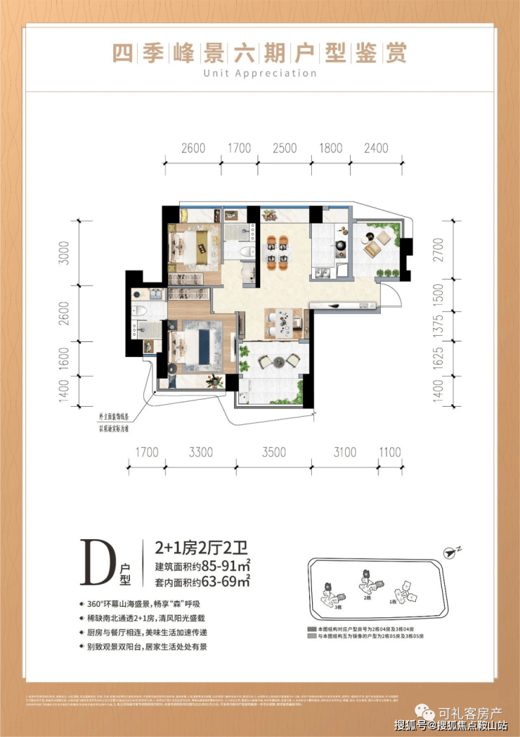 南北通透3房,稀缺南北通透2+1房,观景双阳台设计,享360°环幕山海景观。