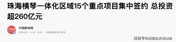 产业也在加速集聚。今年1月,横琴一体化区域重点项目集中签约,15个签约项目计划总投资超过260亿元。