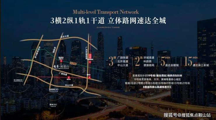 • 3横2纵主干道,速通珠金琶,北环高速+广园快速+中山大道/环城高速+科韵路