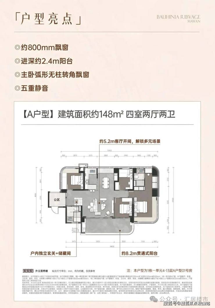 “香蜜湖老破大换前海品质四房”——143㎡户型得房率83%,比福田同面积多出10㎡实用空间。