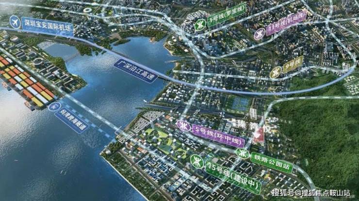 🚇轨交双线 高效畅达全城①双地铁交汇: 距5号线及15号线 (建设中) 铁路公园站仅约300m,2站蛇口、4站企鹅岛、6站南山科技园,通勤无忧;②公交首末站:项目自带公交首末站,家门口的交通枢纽,让出行更无忧;③妈湾跨海隧道: 已通车,速达后海、宝中、深圳湾,从通勤、商务到休闲的无缝切换。