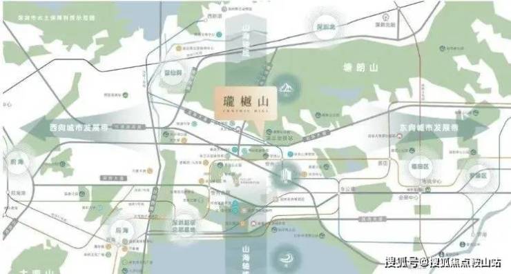 背靠塘朗山、安托山、燕晗山,坐拥30KM山海环城公园带,近20余万平米山体公园,绿地、林地面积42万平米;片区容积率仅0.41。