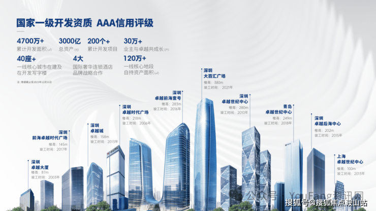 开发数据:目前已完成36个立项项目,20+交地项目,布局福田岗厦、皇岗等城市核心区位。