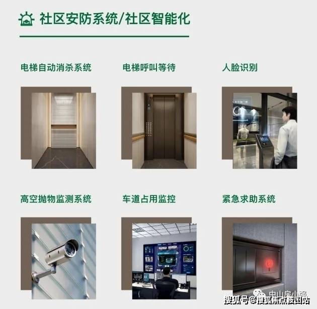 720度全社区智能安防、车道占用系统、紧急救助按钮、电梯自动消杀系统、人脸识别系统、电梯呼叫等待.