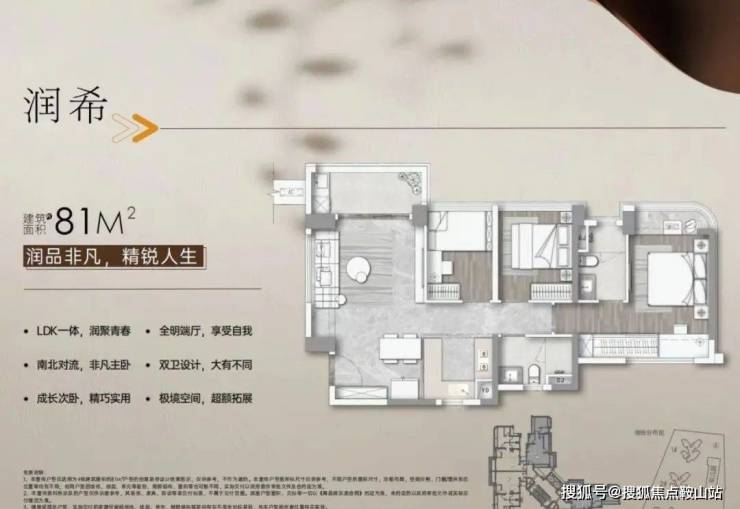 建面81平三房两卫,LDK一体化设计。可以做到三房带主套,还可将两间次卧打通实现两个大房间,主卧南北对流