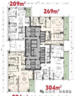 - **低区**(5层起,建筑高度150米以内):主打约209-304㎡四房及以上大户型;