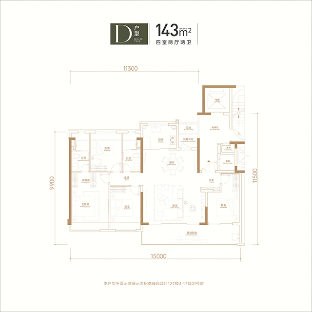 建面约143平方米四居室