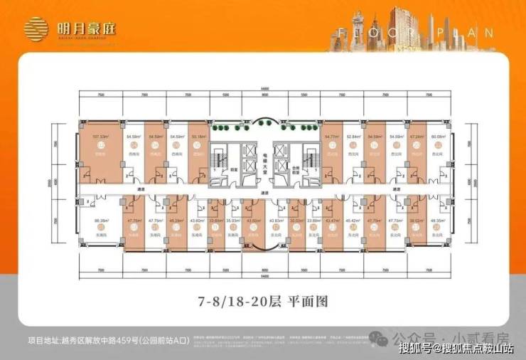 ◆ 标准柱网布局,多套可灵活打通,边套双采光,大户型灵活度高