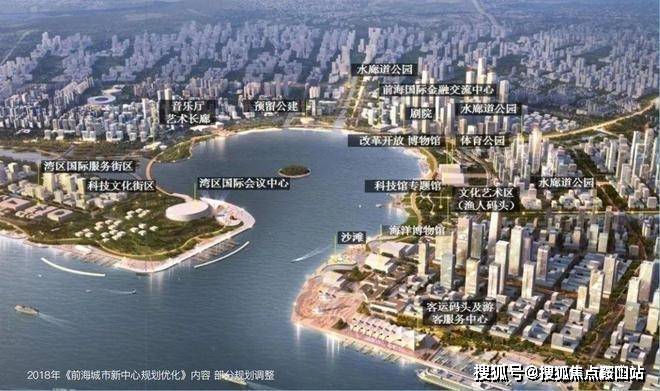 规划前海-“世界级湾区客厅”规划定位:世界前海、合作之区、未来新城,整体规划:湾区一体化、一湾/两山/五区/四岛,规划特色:聚湾营城/治水亲水/添绿植林/减量提质