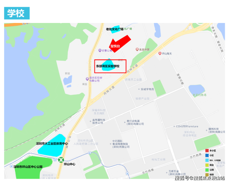 项目自带12班幼儿园,楼下就是坪山东部湾区实验学校(九年一贯制54班公办),该学校是坪山区政府为了打造深圳教育东部高地,重点打造的一所具有示范性,研究型,实验型的九年一贯制学校。