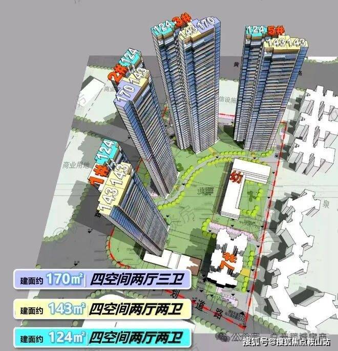 项目占地面积24992平方,共建了4栋住宅,两梯三户,1栋40层,2-3栋44层,5栋41层,目前主要在售户型:124、143、170平四房。