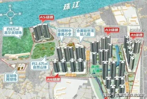 珠江铂世湾位于广州市番禺区江山高尔夫俱乐部东侧,是广州城市中轴与南大干线经济带双中轴交汇点的重要住宅项目。由广州珠江投资开发,项目总占地面积约33万平方米,建筑面积达80万平方米,规划有35栋楼,共计5000户。目前在售的A2组团靠近地铁7号线员岗站,步行仅需约550米,交通便捷。
