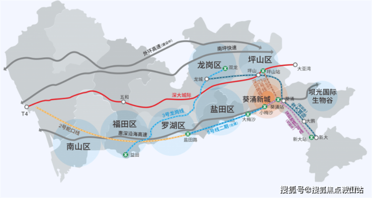 3高速:惠深沿海高速、外环高速、盐坝高速