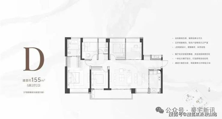 宽境4房布局、全南向开间、270°环幕观景阳台、餐客一体化通厅、U型全明厨房,动线流畅、多功能套房主卧,配备独立卫浴+衣帽间,悦享高阶生活