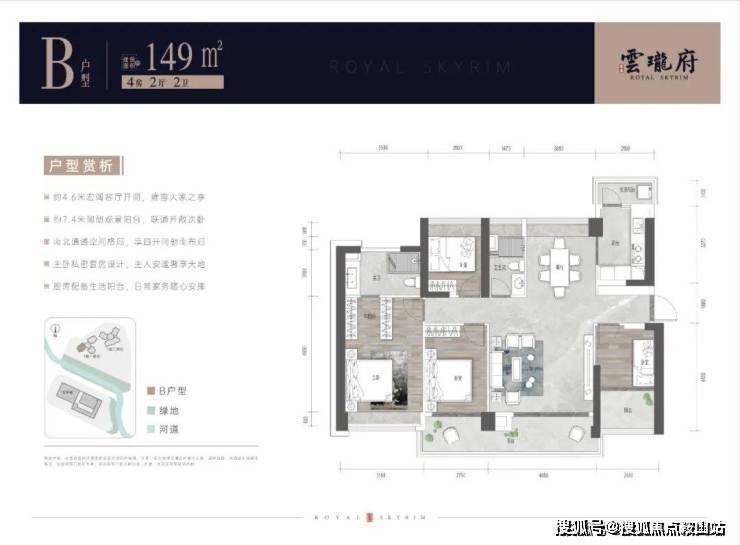 低居住密度,南临曲水成就风水好宅,水岸蜿蜒曲水,水以曲为上,而非直水,聚气效果佳,入住人气两旺。