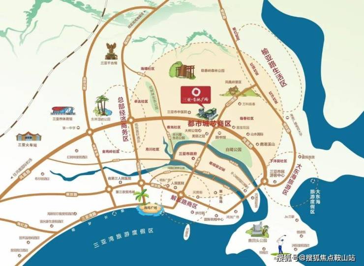 项目倚城市中轴—凤凰路,城市主轴之上聚合高铁三亚站、凤凰机场、绕城高速、游艇码头等海陆空立体交通网,巨量客流,缔造财富商机。