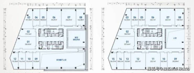 ·一层大堂层高11.9m,面积约555㎡(T1)