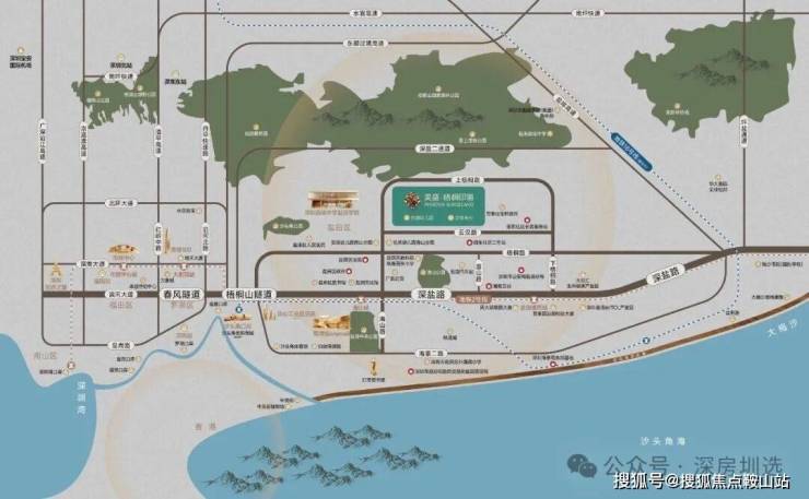 ·多维交通:双地铁口(2/8 号线海山站 & 盐田港西站,约900 米直达),2 站至罗湖、10 站达福田;深盐路、惠深沿海高速、春风隧道三大快速路网,叠加沙头角口岸(重建中)、莲塘口岸双口岸,轻松实现深港双城生活。