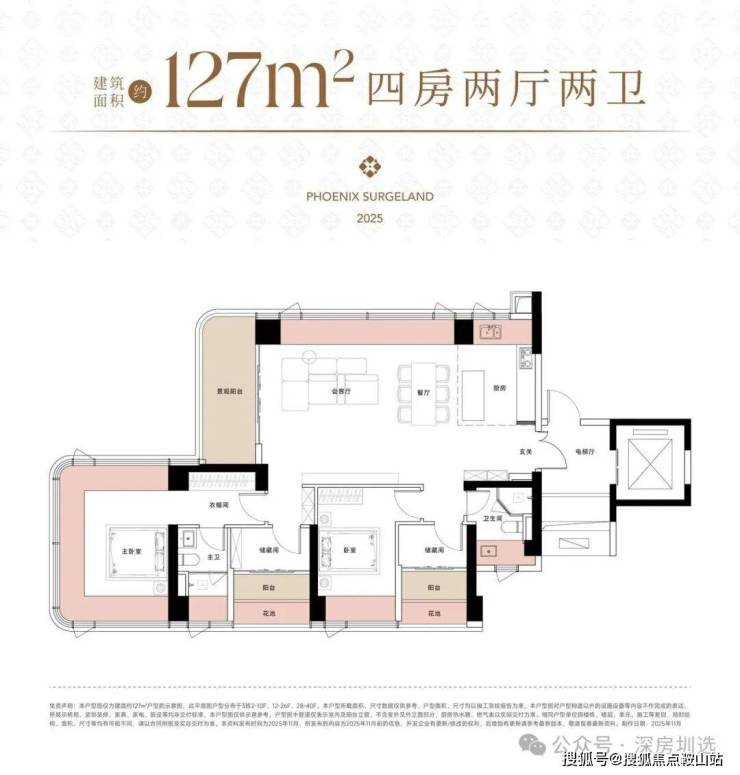 真纯粹:约127-300㎡新规改善大宅,四房占比超87%,主力户型专梯独户,尽享纯粹圈层生活;