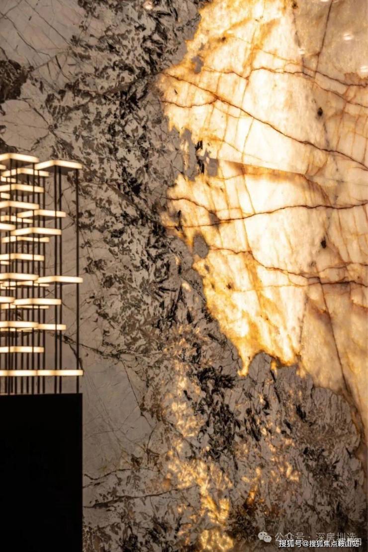 甄选全球奢石铺陈质感公区,文体中心地面采用巴西海浪石材,搭配马达加斯加蓝翡翠、意大利雪山飞狐、整幅伊朗青玉等全球珍稀奢石;