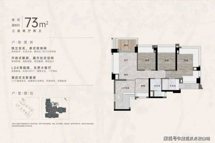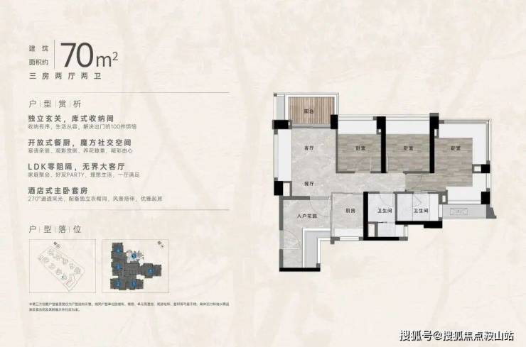 1️⃣ 【建面约70㎡/73㎡三房两卫】原地封神小户型!