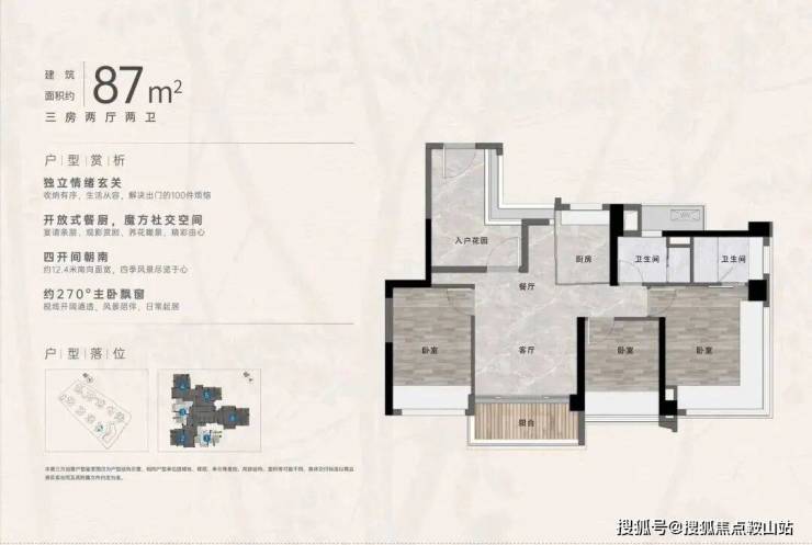 2️⃣ 【建面约87㎡南向三房】南向四面宽!