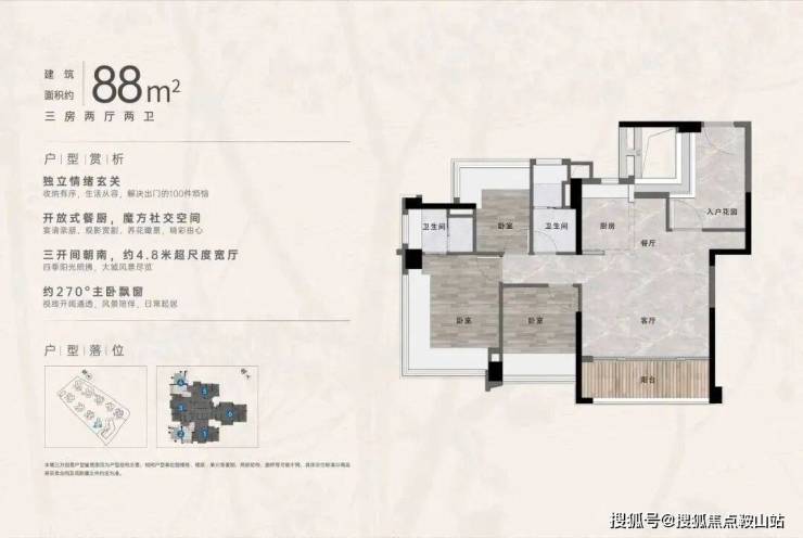3️⃣ 【建面约88㎡南向三房】南向三开间