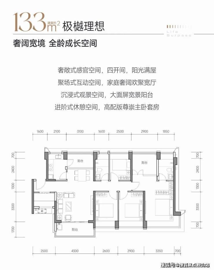 产品方面是项目的最大亮点,项目全系主打建面约114-133平方米的纯四至五房大户型,涵盖114㎡四房、115㎡四房、118㎡四房及133㎡五房,采用3梯4户低梯户比配置,户户南北通透,配备双阳台设计,含赠送面积后得房率高达90%-95%,远超南山区同类小高层产品-1-4-9。133㎡五房为横厅南北通透格局,五开间朝南,配备约7米长大阳台,主卧套房设计,得房率约95%;115㎡四房为竖厅格局,三开间朝南,主卧配备270°转角飘窗,得房率约91%。价格方面,项目备案均价约6.6-6.9万元/㎡,参考总价约752-841万元/套,对比周边深业云海湾(约10.5万/㎡)、天源华府(约8.3万/㎡)等竞品,价格优势较为明显-4-5-8。