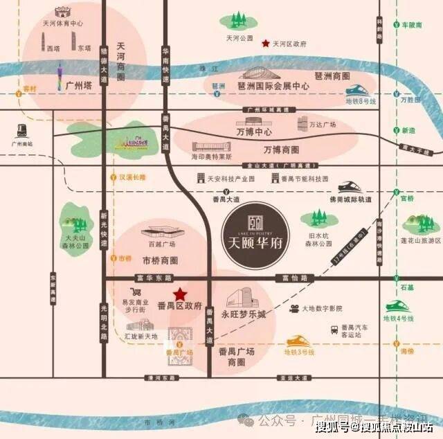 ① 地处番禺广场板块,四地铁交汇的广州枢纽级交通中心(3 号线、18 号线、22 号线、17 号线)