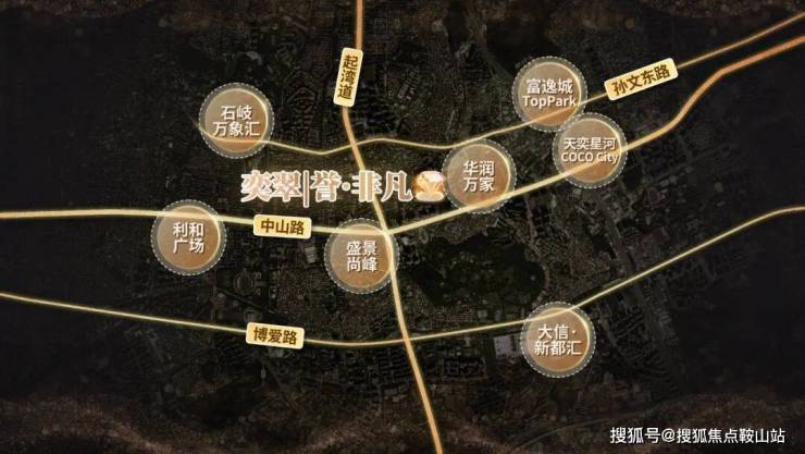 奕翠园,家门一条中山路,短短4公里,就将利和、盛景尚峰、中山天奕星河Cococity,还有华润万家4个商圈串成一线。