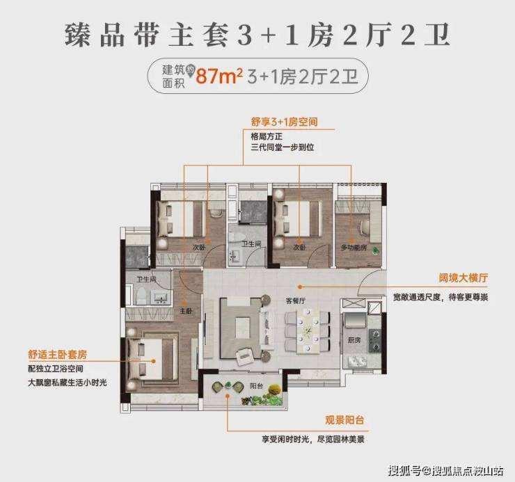 花城云著凭借优质产品力,打造建筑面积约78-110㎡爆款三至五房,拥有超高使用率,同等面积多得一间房,让购房者一次满足未来多口之家的需求,人生置业一步到位。