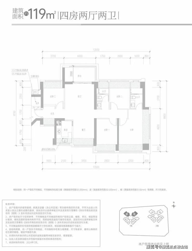 119㎡的4房2厅2卫,设计的竖厅南北通透格局,客厅4米开间,得房率约:95%(包含赠送),阳台主朝西北或东北向,看科学公园景观。