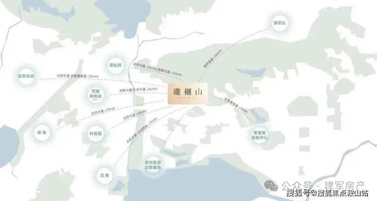 中心区域:深圳山海城中轴,左手香蜜湖、右手华侨城,六大总部基地环伺