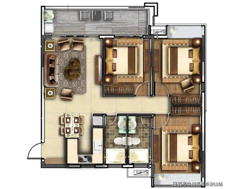建筑面积约109-117㎡ 3房2厅2卫(一梯两户/温泉入户)