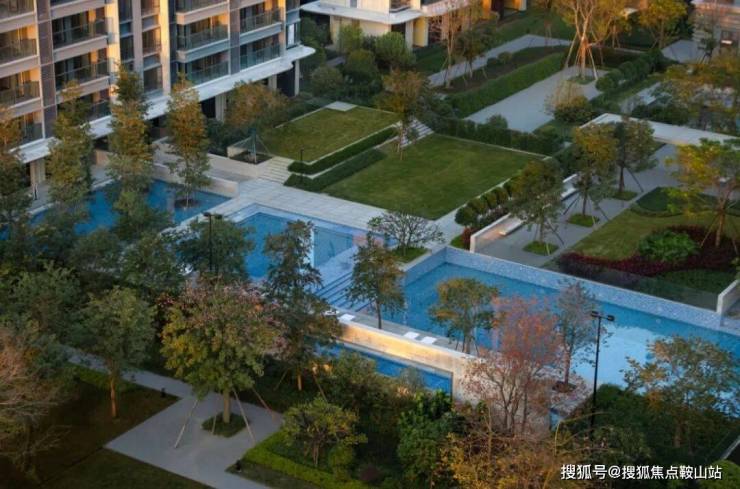 設計構築水景交融的生態美,推演以人為主體的空間感知,以綠植、拓展草坪、藝術景墻圍合空間,泳池被自然融入與包裹,最大限度地減少幹擾、保證私密以及確保孩童在社區遊玩的安全。