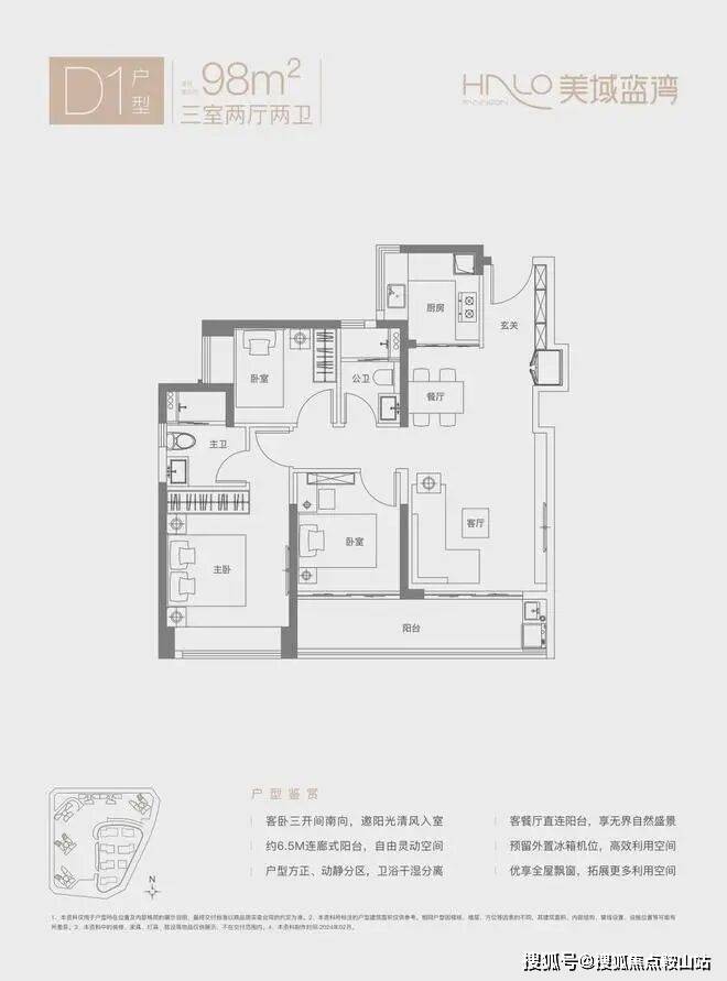 【梯户比】:A/B/E座3梯6户;C座2梯4户;D座2梯3户