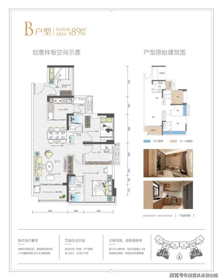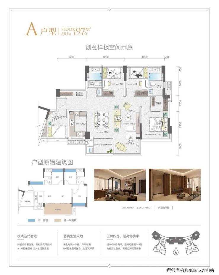 ④ 王牌四房,超高得房率,100%超高得房率