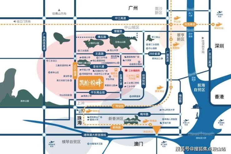 粵港澳大灣區、港珠澳大橋、深中通道(已通車)、深珠城軌(規劃中)、廣珠輕軌、深茂高鐵、廣中珠澳輕軌、珠海北站、廣州地鐵18號線、粵港澳優質生活示範區”“珠西生態休閒旅遊基地”等利好。