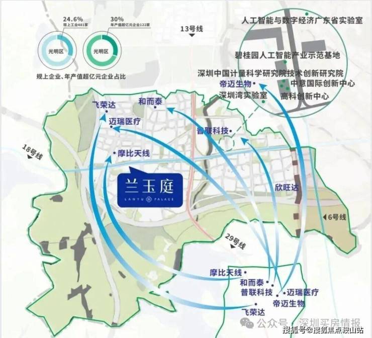 片区内吸引了迈瑞医疗、深圳湾实验室、普联科技、和而泰等龙头企业集聚。汇聚约122家超亿元产值企业,磁吸近十万高精尖科技人才持续涌入,高阶圈层聚首,共鸣峯层生活。