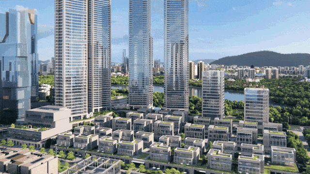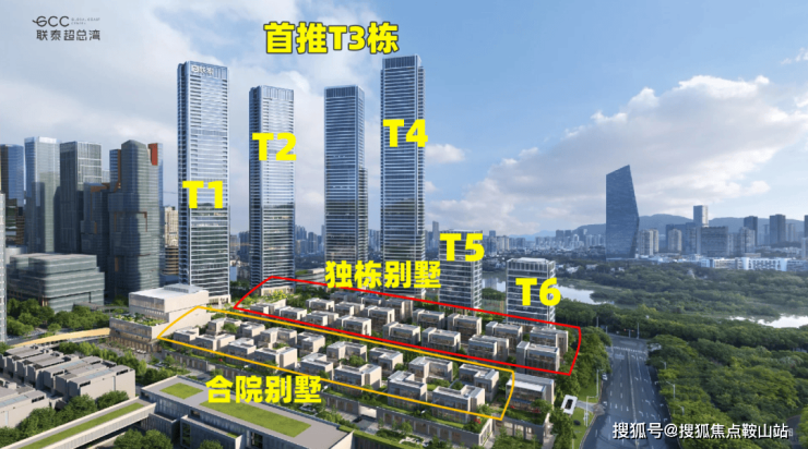 GCC联泰超总湾以约9.2万㎡占地、仅3.0的容积率,打造片区稀缺纯居综合体。由4栋超高层公寓 + 2栋小高层写字楼 + 35栋商墅 + 1栋商业组成。