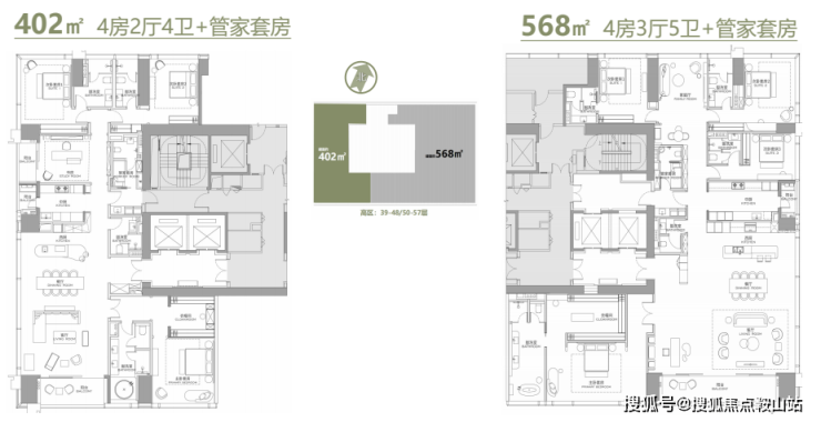 568-1032㎡定制大平层/复式:私梯入户,专属尊崇不彰自显。